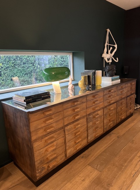 Ancien meuble à tiroirs de bijoutier complètement rénové